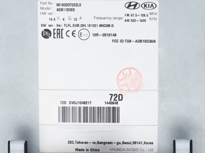 | 96160D3720ZL5 | ADB11D3EE | TLFL.EUR.284.181001.MICOM.D | HYUNDAI MOBIS | ECE |